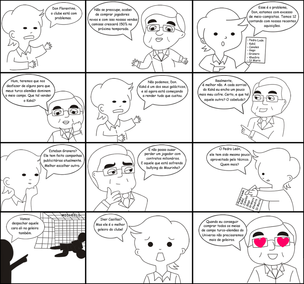 Uma pequena estórinha sobre o Poderoso Chefão do Real Madrid, Florentino Pérez, e algumas complicações diárias no clube merengue. Para ver a estória é só clicar na figura abaixo: