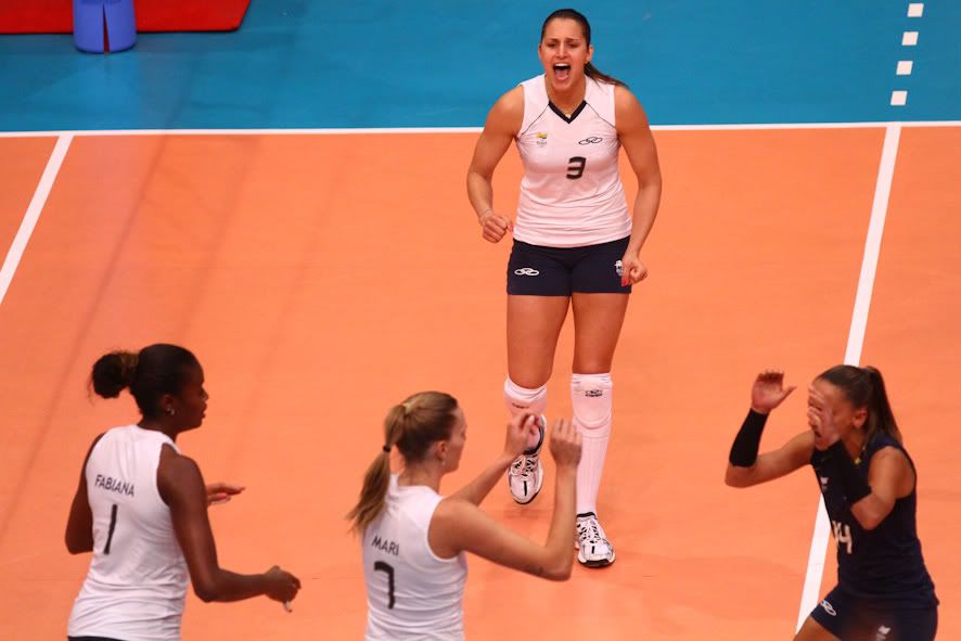 A República Dominicana assustou no início do terceiro set, abrindo 3 a 0 e mostrando que buscaria a reação. Zé Roberto pediu tempo para tentar ajeitar o time, que na desvantagem passou a cometer erros e ajudar as dominicanas a abrir quatro pontos de vantagem na primeira parada do set. Mas as brasileiras despertaram, e fizeram quatro pontos seguidos, empatando a disputa: 8 a 8. Contudo o decorrer do set foi um sufoco, as dominicanas não desestabilizaram, começaram a provocar as brasileiras e mantiveram ao longo da parcial dois pontos de vantagem, até que em um bloqueio duplo o Brasil novamente conseguiu o empate: 18 a 18. Com a recuperação da equipe verde e amarela, as dominicanas sentiram o peso de disputar contra atletas vitoriosíssimas, começaram a errar, e então o ataque brasileiro cresceu, e em um ponto de Fernanda Garay e uma bola de Sheilla, que atacou de primeira após receber direto a defesa de um saque de Juciely, o Brasil fechou o set mais complicado: 25 a 23, e 3 sets a 0.
