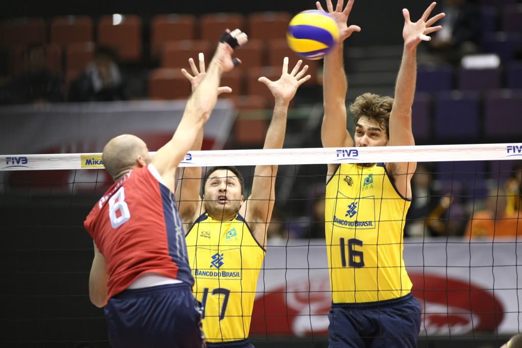 O bloqueio norte-americano dificultou o jogo brasileiro no início da quarta parcial, parando duas vezes o ataque verde e amarelo, deixando os Estados Unidos fazer 3 a 1. Contudo com mais tranquilidade e aplicando bem a técnica das duas primeiras parciais, a Seleção Brasileira buscou a desvantagem e em um bloqueio triplo sobre Anderson deixaram tudo empatado: 4 a 4. Sidão marcou duas vezes seguidas para deixar a equipe verde e amarela na dianteira na primeira parada técnica: 8 a 6. Administrando a vantagem e com uma boa participação de Lucão e o bloqueio brasileiro funcionando de forma eficaz, a equipe verde e amarela engrenou e abriu cinco pontos de vantagem, liderando na segunda parada obrigatória por 16 a 10 após, novamente, parar Anderson no bloqueio. Com a cômoda vantagem e a defesa encaixada, a Seleção Brasileira finalizou a parcial por 25 a 16 em um bloqueio de Sidão, vencendo a disputa por 3 sets a 1. Lucão foi eleito o melhor jogador da disputa após ter marcado 16 acertos, enquanto Vissotto anotou 18 vezes.