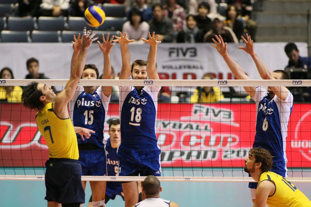 Um saque na rede de Winiarski deu o primeiro ponto da disputa para o Brasil. A Polônia iniciou a partida cometendo alguns erros, e os brasileiros apostaram no saque forçado e nos ataques de velocidade para parar os poloneses. O placar seguiu equilibrado, até que em um bloqueio sobre Giba, a Polônia liderava na primeira parada técnica por 8 a 6. Nos erros do time verde e amarelo, os europeus abriram quatro pontos de vantagem, fazendo Bernardinho pedir tempo. As boas defesas brasileiras não conseguiram parar o forte ataque adversário, que ampliou sua vantagem e com Bartman descendo o braço no ataque, a Polônia fechou a parcial em um erro de saque de Sidão: 25 a 18.