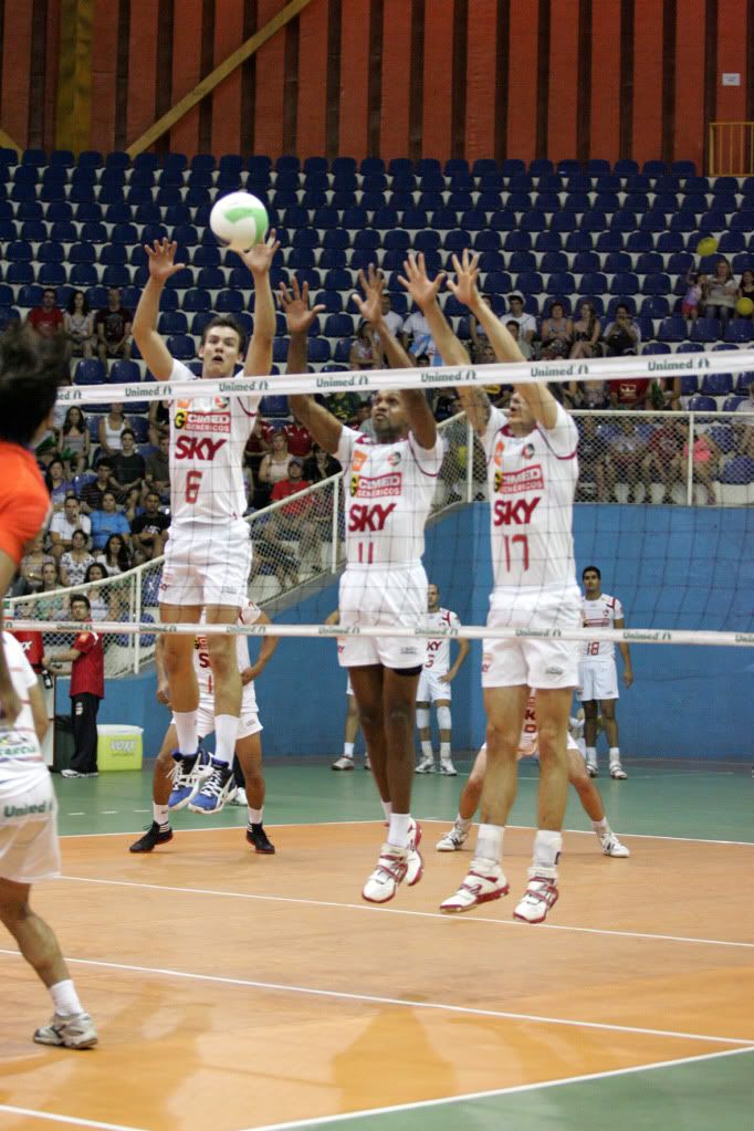 João Paulo Tavares explorou o bloqueio para dar o primeiro ponto do terceiro set para a Cimed. O duelo seguiu equilibrado no início, muito pelo bloqueio das duas equipes falhar no momento de parar a ofensividade adversária, mas os visitantes seguiam com a vantagem de dois pontos. Um ataque de Caio, do Londrina, na saída de rede empatou tudo em 7 a 7. Em uma bola fora do time de Santa Catarina, o Londrina tomou a dianteira pela primeira vez no duelo: 12 a 11. A Cimed empatou de novo a disputa em um bloqueio de Éder, e um erro de ataque que parou na rede deixou os visitantes novamente a frente no segundo tempo técnico: 16 a 15. A disputa seguiu ponto a ponto, até que no final, a Cimed deslanchou na boa passagem de Renato no saque, fazendo uma sequência de quatro pontos, e finalizou o set por 25 a 22 em um ataque na saída de rede.